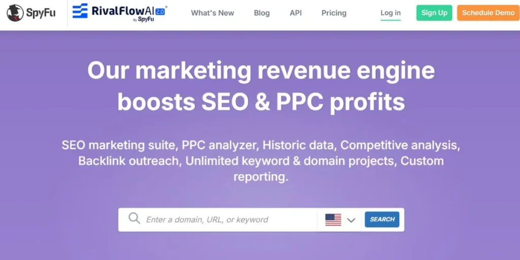 SpyFu concentrates on competition intelligence. It displays competitor keywords, advertisement text and the amount they pay on the Google Ads and organic search. It retains over 15 years of history enabling you to view how competitors evolve with time.