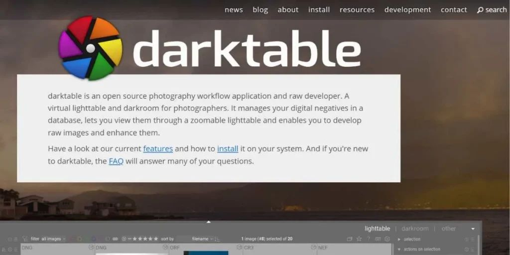 - Darktable (RAW files): Lightroom alternative, which is open-source and free of charge.