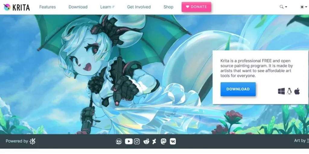 The best free drawing program is Krita. It boasts of special brush engines and stabilizers that outdo the conventional tools of Photoshop.