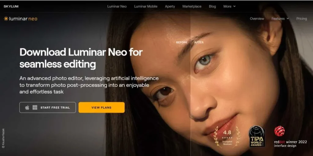 Luminar Neo, one of the modern Photoshop alternatives, dwells on Artificial Intelligence. Photoshop offers you to replace your sky manually by clicking on it, but Luminar does everything in a single button. It scans and gives recommendations on how to improve your photograph. It is possible to relight a scene, delete power lines or to use simple sliders to smooth skin. It is not so much of a pixel editor but a photo enhancer. It reduces time taken by photographers in editing.